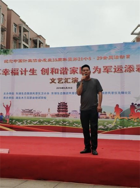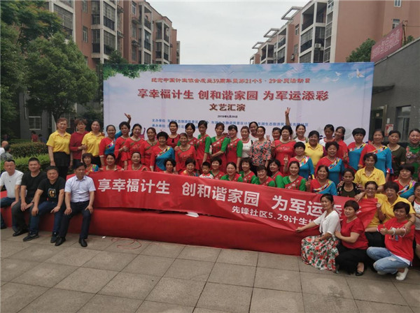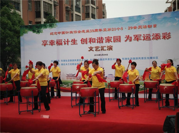 為紀(jì)念中國計劃生育協(xié)會成立39周年暨第21個“會員集中活動日”,大力宏揚計生協(xié)會團(tuán)隊精神,倡導(dǎo)文明進(jìn)步的婚育觀念,增強社區(qū)居民建和諧家園、迎軍運的濃厚氛圍,東湖風(fēng)景區(qū)先鋒社區(qū)居民委員會于2019年5月29日上午組織開展了“享幸福計生 創(chuàng)和諧家園 為軍運添彩”的文藝匯演活動。