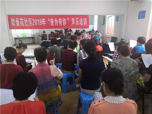 6月19日上午9點,歐景苑社區開辦的“音為有你”聲樂培訓班第五堂課開課啦!近30余位聲樂愛好者參與了此次課程。