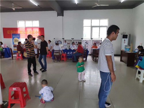 6月27日湖北木蘭花社會工作服務中心工作人員早早的就來到了建強社區準備今天上午的便民活動。建強社區的工作人員與木蘭花社工,魯紅團隊的志愿者們一起布置場地,擺放桌椅,掛上橫幅,靜候居民的到來。