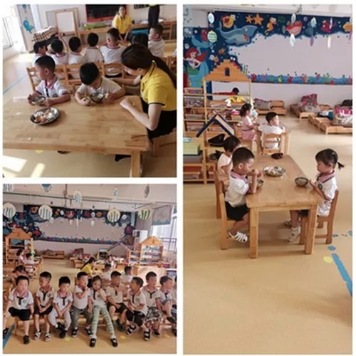 小朋友們該回教室吃飯啦!中班、大班的小朋友們不愧是大哥哥大姐姐了。一來就適應(yīng)的特別好,自己吃飯也吃得特別香,吃完就排排坐好,一點(diǎn)都不用老師操心。