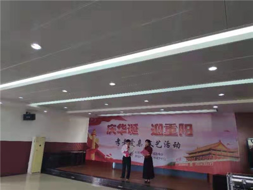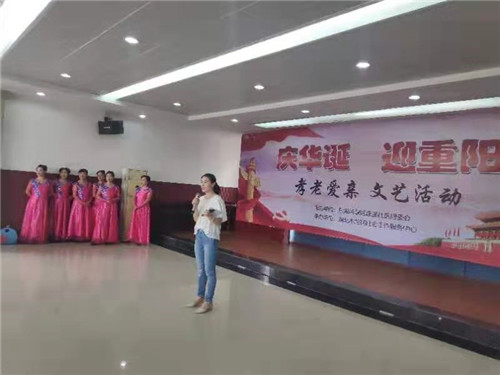 “為隆重紀(jì)念新中國(guó)成立70周年華誕,在重陽(yáng)節(jié)即將來(lái)臨之際,謳歌偉大祖國(guó)所取得的輝煌成就,我們?cè)谝黄鸷霌P(yáng)孝老愛(ài)親傳統(tǒng)美德,共抒愛(ài)國(guó)情懷,今天我們建強(qiáng)社區(qū)特開(kāi)展“慶華誕迎重陽(yáng)孝老愛(ài)親”文藝活動(dòng),讓我們可以聚在一起歡度國(guó)慶,迎接重陽(yáng)?!被顒?dòng)開(kāi)始前,社區(qū)劉主任現(xiàn)場(chǎng)致辭,祝福祖國(guó)繁榮昌盛,祝福大家重陽(yáng)節(jié)闔家團(tuán)圓。