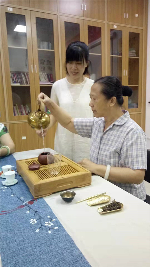2019年8月8日下午,徐東路社區第六次茶藝課在湖北日報工作站開課,湖北木蘭花社會工作服務中心邀請大家熟悉的甄若菲為茶友們授課。這次老師帶給大家的是普洱茶的知識——