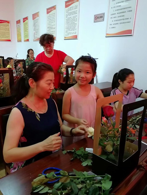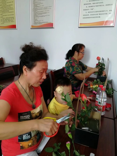 為了對轄區內的居民進行各方面的愛好培養,組織居民參與手工插花制作活動;讓居民們遠離電子產品危害,學會健康生活方式等知識;開展組織學插花認識各種植物,豐富暑期生活與提高自我動手能力。