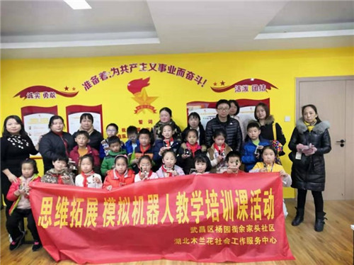 12月20日下午3點半,余家頭社區(qū)攜同湖北木蘭花社會工作服務中心在社區(qū)居委會四樓活動室開展了第七場“思維開拓模擬機器人制作”活動。余家頭社區(qū)邀請了轄區(qū)內(nèi)近30位孩子來參加了此次活動。