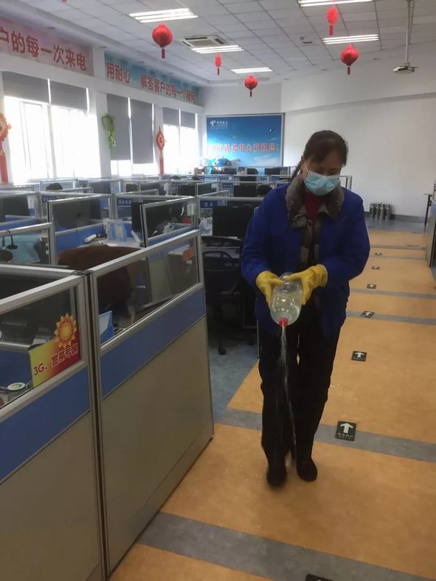 近20名員工主動留守,克服困難,為湖北電信近百名“10000號”工作人員提供衛生消毒和保潔服務。