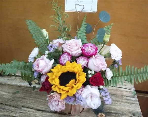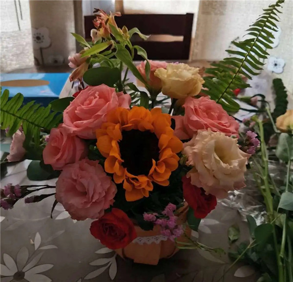 花藝分享中,何老師為大家講解了插花的種類和插花過程中需注意的問題,例如“上散下聚、高低錯(cuò)落、疏密有致和仰俯呼應(yīng)等等”。現(xiàn)場通過示范操作,讓大家盡快掌握到了插花的基本技巧。