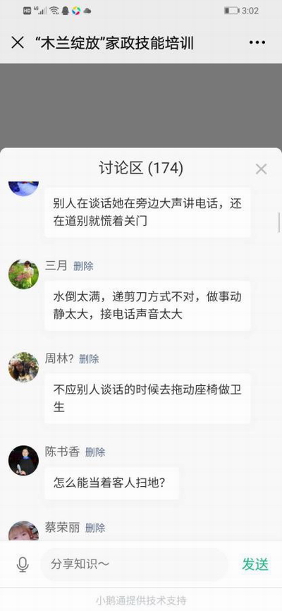本期線上直播課程,有1097人次觀看學習。通過課中討論、課后反饋,學員們基本掌握了上崗服務與溝通禮儀,了解了用餐及電話使用禁忌,深入了解了家政服務員工作職責及職業道德,達到本次課程預期培訓效果。