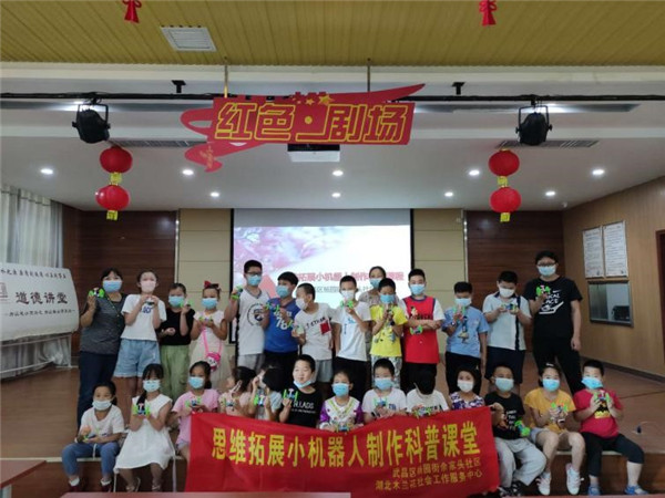 8月28日下午,余家頭社區攜同湖北木蘭花社會工作服務中心在社區居委會四樓活動室開展了一場“思維拓展小機器人制作科普課堂”活動。余家頭社區邀請了轄區內近30位孩子來參加了此次活動。