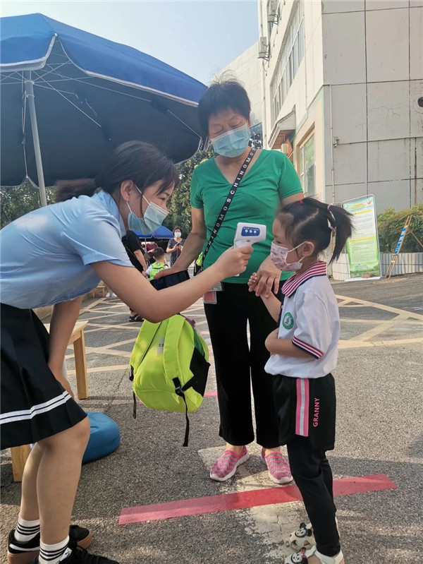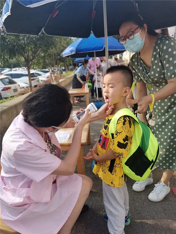入園第一步,測體溫。希望小朋友們健康入園,快樂學習!