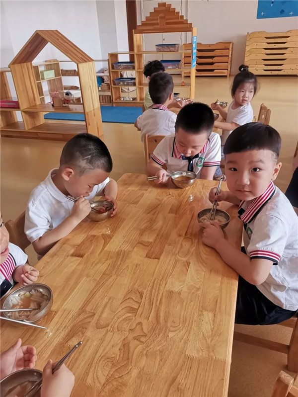 進入教室,食堂叔叔阿姨早已為大家烹飪好營養又美味的早餐。看大家一個個吃的這么香,就知道師傅們的手藝沒有生疏。