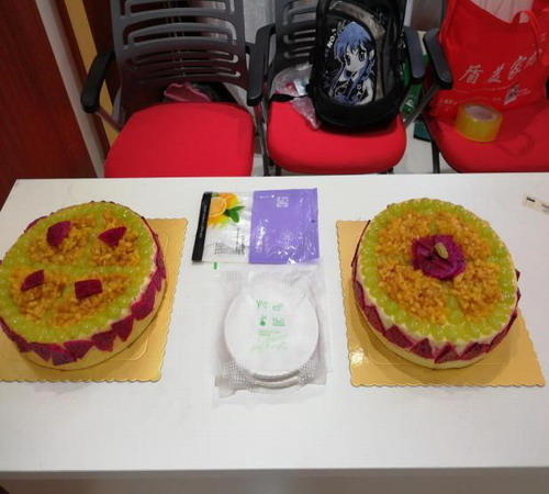 為老壽星們特制的、無奶油、水果生日蛋糕,預示著老年生活的甜蜜圓滿,老壽星們吃著鮮味十足的蛋糕,心生暖意,其樂融融。