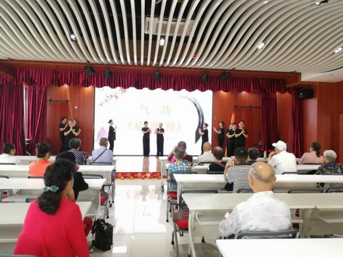 木蘭藝術團隊為大家表演了健美氣功《中國脊梁》,其外柔內剛的氣功表演給老壽星們帶來了美好的視聽享受。氣功老師還現場教壽星們學習了三節簡易的健身氣功:搓手、夾耳、繞舌,能讓老人們在日常生活中隨時隨地都可以練習,達到健身的目的。
