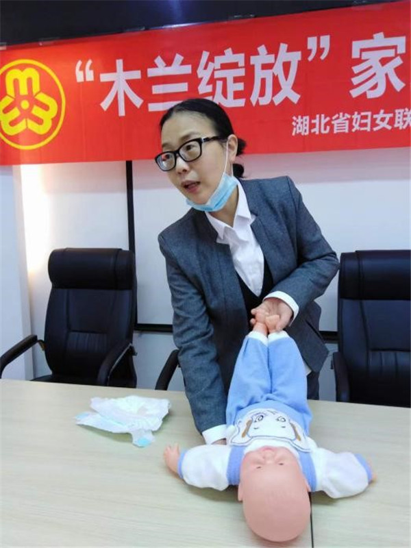 經過前期第一輪的線下培訓,結合社區女性對家政的關注點,此期線下實操授課,講師重點傳授嬰幼兒日常護理。如何為新生兒更換紙尿褲,新生兒沐浴等專業知識。