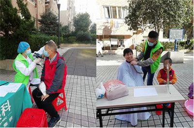 當天早上,工作人員和志愿者早早來到活動現場,擺好活動所需的工具,準備迎接居民的到來。活動一開始,社區的居民朋友們蜂擁而至。在工作人員的合理安排下測量血壓血糖、口腔檢查、眼科、中醫問診、中醫按摩、磨刀、修鞋、配鑰匙、義務理發……等等十余個便民義診服務項目得到順利開展。