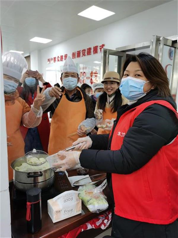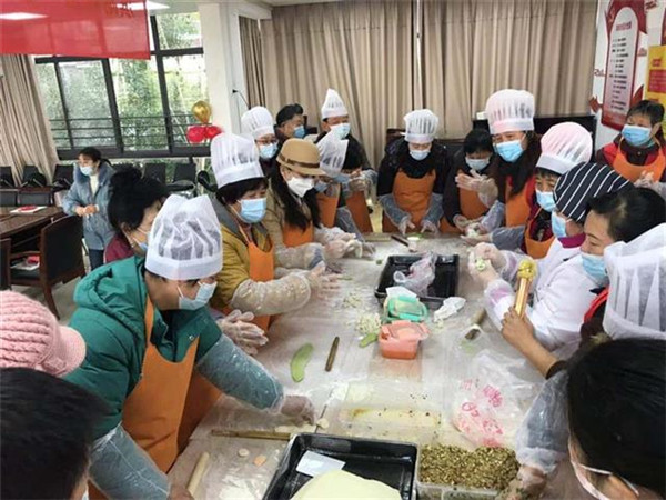 活動開始后,手工老師教授現場的居民制作手工窗花和“福”字臺歷,形狀各異的剪紙成品讓老人笑得合不攏嘴。接下來是“冬至五福百財餃子”環節,在下沉黨員的幫助下,居民們穿戴好帽子、圍裙、袖套以及一次性手套,和老師一起熱火朝天地搟面皮、和餡料、包餃子。一屜屜包好的餃子成型后,居民們邊煮邊吃,吃著自己包的餃子,嘴里香,心里甜。
