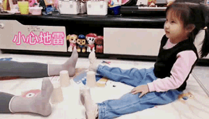 游戲玩法:雙腿伸直,交替越過紙杯雙腳不要碰到紙杯。