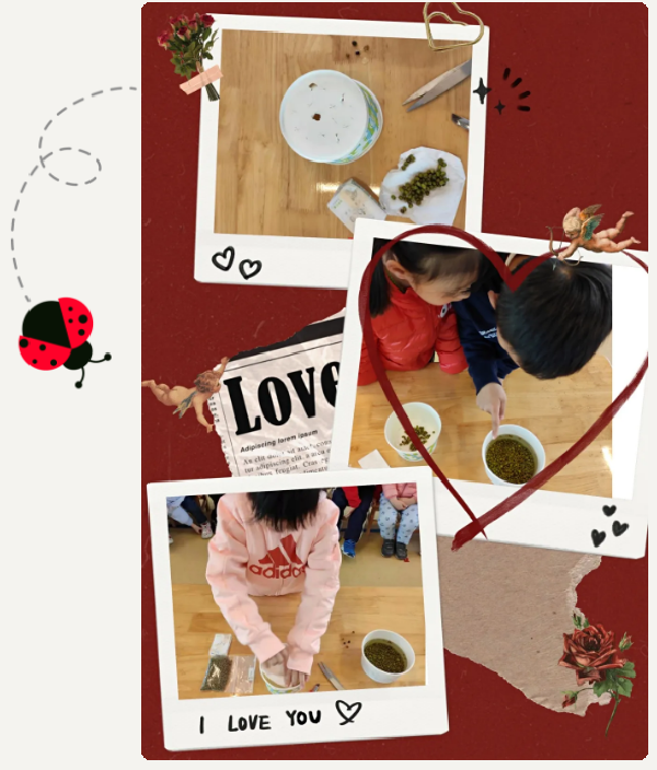 老師們提前準備好昆蟲圖片、請小朋友們發(fā)現(xiàn)昆蟲、如果有和昆蟲一樣的圖片就張貼在觀察表上。