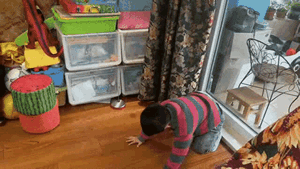 游戲玩法:小朋友俯身準備,先用手向前爬到最遠端,然后雙腿小步向前走,再重復以上動作。