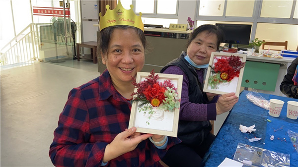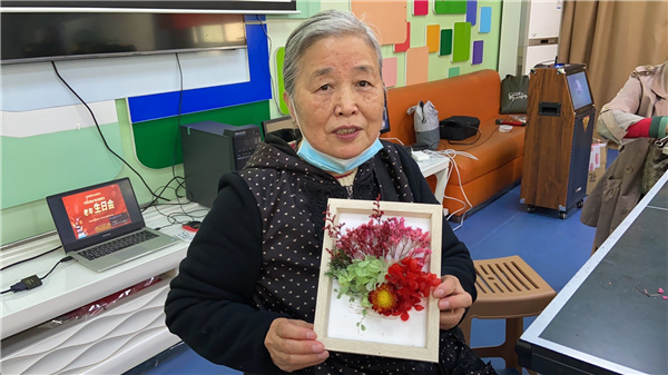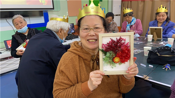 經(jīng)過大家的努力,普通的干花被制作成精美的相框作品,老人們拿著自己親手做出來的干花相框愛不釋手,每個人的臉上都露出了開心的笑容。隨后大家討論著回家后干花相框的擺放位置,讓整個現(xiàn)場顯得非常熱鬧。干花相框制作可以陶冶人的藝術(shù)情操、培養(yǎng)構(gòu)圖藝術(shù)的興趣,在日常生活中可以延伸到其他的插花、繪畫的興趣活動中去,對于老年人來說是一種培養(yǎng)興趣的活動,可以豐富老年人的閑娛生活。