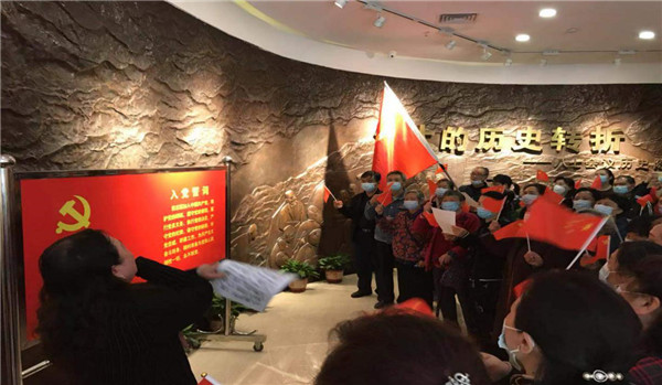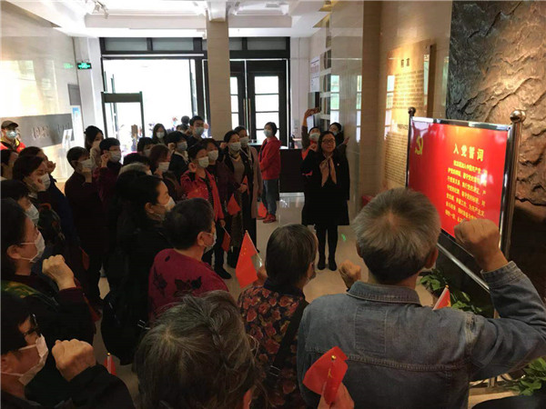 “我志愿加入中國共產黨,擁護黨的綱領,遵守黨的章程,履行黨員義務……”在八七會議會址紀念大廳,全體黨員同志在黨委黃書記的帶領下面對黨旗重溫入黨誓詞,鏗鏘有力的宣誓聲回響在大廳內。宣誓結束后,全體黨員在黃書記的帶領下深情演唱了《歌唱祖國》,歌聲久久回蕩,表達了社區黨員群眾們對黨對祖國的深情。
