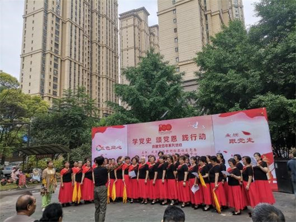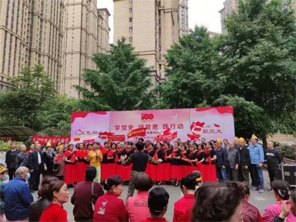 活動開始后,主持人邀請了紡器社區(qū)第一書記嚴阿榮書記為大家致辭。講話中首先對建黨100周年表達了祝福,其次對社區(qū)黨員及過生日的老人們的到來表示了熱烈歡迎,并預祝此次活動取得圓滿成功。隨后,由紡器社區(qū)黨員為大家?guī)砹撕铣冻礁杞o黨聽》、舞蹈《在唱山歌給黨聽》、舞蹈《鼓動天地》等多種祝壽文藝節(jié)目。歡快的舞蹈,優(yōu)美的旋律,嘹亮的歌聲,整場演出,黨員們盡情地展現(xiàn)了朝氣蓬勃、積極向上的精神風貌,以多種形式歌頌幸福美好的生活,表達對祖國、對黨的深情祝福。在文藝表演的間隙,還插入了以黨建、黨史為主題的有獎問答環(huán)節(jié),在得到小禮品的同時也不忘回顧黨的歷史。