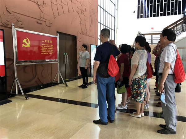 到達二七紀念館廣場后,首先所有參與的成員一起來了個大合影。之后便組織大家有序地進入二七紀念館內。在進入二樓展廳參觀之前,國棉社區的郭書記與金主任給大家分發了能量包(水和干糧)。參觀結束之后大家在一樓大廳集合,在二七紀念碑前,由郭書記帶領大家重溫入黨誓司,要象先烈那樣當一個為人民的服務者,永不叛黨。最后,大家有序的上車,踏上了回程的路途。