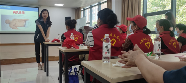 志愿者們在謝老師的指導(dǎo)下現(xiàn)場進行了心肺復(fù)蘇,夏季高溫急救等技能學(xué)習(xí),大家紛紛表示,今天的培訓(xùn)內(nèi)容非常實用,面對突發(fā)事件時的應(yīng)急救援處置能力得到了提升,今后將把專業(yè)的救護理念與技能融入到志愿服務(wù)中,讓志愿服務(wù)更專業(yè)更規(guī)范。