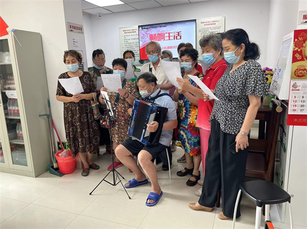 范老師一早就帶著自己的手風琴第一個到中心,之后報名參與唱歌的老年人居民們也陸陸續續坐滿了中心,今天的練習曲目是《但愿人長久》,大家一邊練習一邊相互請教、糾錯,氣氛歡樂融洽。本次活動不但吸引了很多居民踴躍參與,前來觀摩希望增加名額的居民也不少,大家開放歌喉、熱情投入。