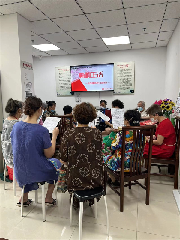 為滿足老年人居民愛好唱歌、喜歡音樂的需求,讓他們能夠“老有所學,老有所樂”。國棉社區木蘭花居家養老服務中心特開展了一場“暢響生活”為主題的音樂唱歌類互動活動。