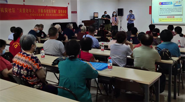 為切實(shí)推進(jìn)反詐騙宣傳工作,維護(hù)老年人合法權(quán)益,守護(hù)好居民的“錢袋子”,武漢市武昌區(qū)水果湖街機(jī)安社區(qū)聯(lián)合湖北木蘭花社會(huì)工作服務(wù)中心,做好防疫,在機(jī)安社區(qū)三樓開展了“關(guān)愛老年人,開展養(yǎng)老防詐騙”宣傳講座。