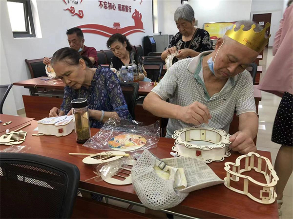 離傳統佳節中秋節很近了,工作人員將事先準備好的“花好月圓燈籠”材料分發給大家,由手工老師現場教他們制作燈籠。不一會兒,一個個精致漂亮的傳統工藝燈籠在老人們手中誕生,他們拿著自己親手做出來的燈籠愛不釋手。大家紛紛表示,這場活動很有意思、收獲滿滿。