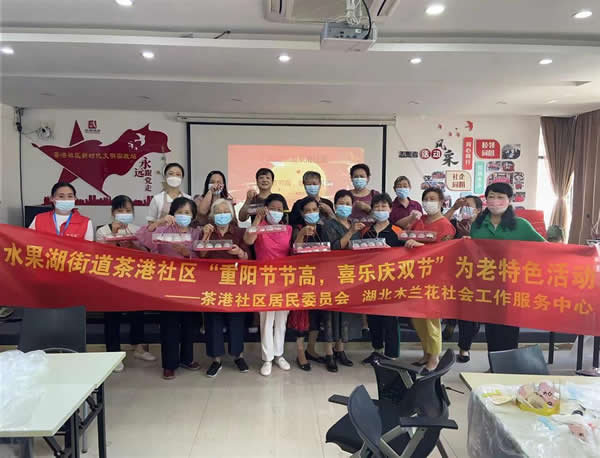 9月26日,武漢市武昌區水果湖街道茶港社區攜手湖北木蘭花社會工作服務中心,開展“重陽節節高,喜樂慶雙節”為老特色活動,弘揚中華民族尊老敬老的傳統美德,倡導敬老、愛老、助老的新風尚。