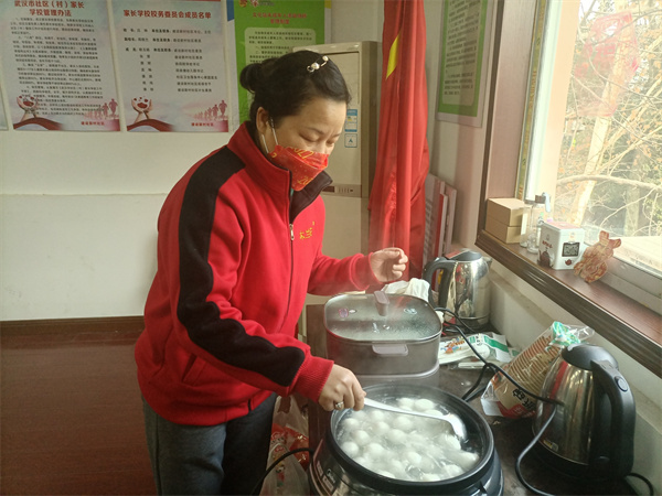 另一邊工作人員正在為大家煮元宵,甜糯香軟的湯圓給大家的生活增添了幸福滋味。