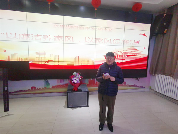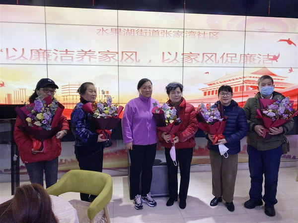 張家灣社區(qū)黨委書記高桂萍為廉潔家庭代表們獻(xiàn)花。她說(shuō),家風(fēng)是中華民族的優(yōu)秀傳統(tǒng)文化,良好家風(fēng)是新時(shí)代干事創(chuàng)業(yè)的助推器,社區(qū)舉行這場(chǎng)活動(dòng),起到了傳播好家風(fēng),推動(dòng)廉潔文化深入人心的效果。