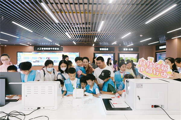 “這是我們高新區(qū)的最強(qiáng)大腦,科技企業(yè)可以像買水電氣一樣購買算力?!痹谖錆h超算中心,講解員充滿童趣而不失細(xì)致地講解各類計(jì)算機(jī)的原理和使用方法,為大家打開一扇通往科技的大門。小朋友們認(rèn)真聽著,時(shí)不時(shí)提出問題,發(fā)揮著他們天馬行空的想象力,暢游在科技的海洋里,科技的種子就此在孩子們心中生根發(fā)芽。在人工智能研究院,小朋友們和媽媽一起跟“多模態(tài)大模型紫東太初”進(jìn)行對(duì)話,屏幕內(nèi)外的暢通對(duì)話引起了大家的陣陣驚呼,各類炫酷的科技產(chǎn)品讓孩子們目不暇接。