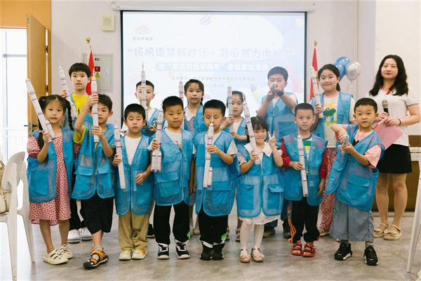 隨后,媽媽與孩子們來到航天科普課堂。一踏入航天科普活動(dòng)室,孩子們驚呼出來“這像是進(jìn)入太空一樣”“媽媽,我要跟同學(xué)說我今天進(jìn)入太空了”。嫦娥奔月航天科技(武漢)有限公司科普老師熊彥為孩子們?cè)敿?xì)講解航天科普知識(shí),緊接著,工作人員發(fā)放了火箭模型制作材料,媽媽與孩子們共同動(dòng)手制作,組裝完成了航天模型。大家拿著自己精心制作的航天模型,內(nèi)心充滿了自豪感與成就感?;?dòng)中,熊彥讓大家拿起手邊的模型和星星燈,說:“愿孩子們永葆心里的那份童真,保留著自己對(duì)宇宙星辰的好奇,終有一天,你們會(huì)在自己的領(lǐng)域一飛沖天?!?br/>