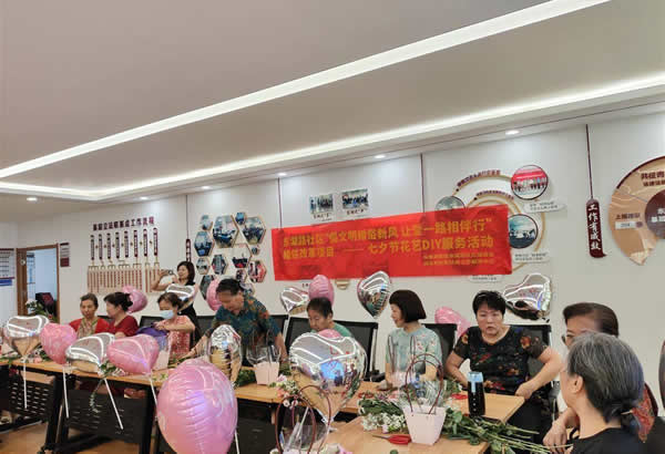 為倡導文明婚俗、弘揚時代新風,在七夕節來臨之際,8月17日,武漢市武昌區水果湖街道東湖路社區居委會聯合湖北木蘭花社會工作服務中心,舉辦“婚俗改革項目——七夕節花藝DIY”活動,讓居民生活更加豐富多彩。