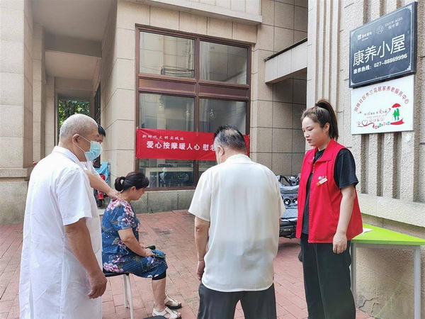 9月13日,武漢市武昌區楊園街道國棉社區木蘭花居家養老服務中心十分熱鬧,許多老人來到這里,接受測血壓、血糖等醫療健康服務,按摩醫師還為老人們提供肩頸按摩服務,很受老人歡迎。