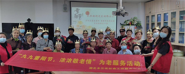 重陽節即將到來,10月18日,武漢市武昌區東湖路社區聯合湖北木蘭花社會工作服務中心,舉行“手作花蜜慶重陽”長者集體生日會活動,30位老人齊聚一堂,玩得十分開心。