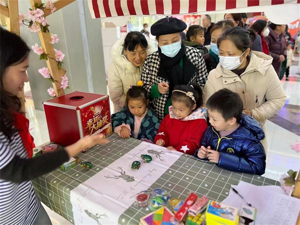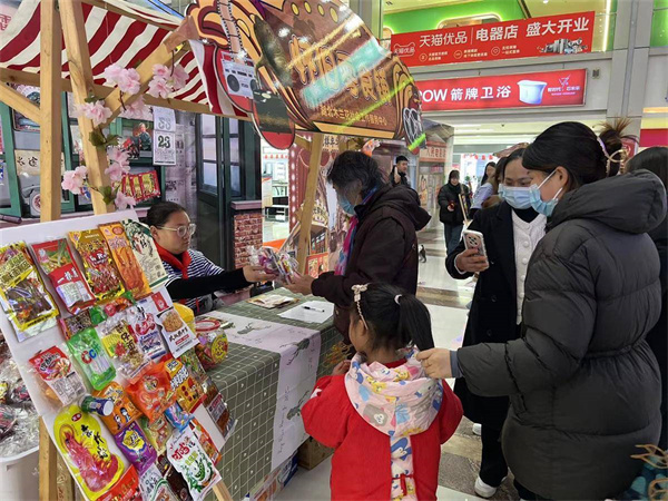 懷舊市集設(shè)“冰糖葫蘆”“兒時風(fēng)車”“畫糖畫”“兒時玩具”“懷舊套圈”“童年游戲”“懷舊零食鋪”“洞洞樂”八大板塊,60后、70后、80后的“大孩子”帶著00后、10后的“小孩子”穿梭其中,玩得不亦樂乎,活動現(xiàn)場成了歡樂的海洋。“咔嚓”一聲,隨著相機(jī)快門響起,一張張“童年回憶錄”將一個個溫馨幸福的瞬間定格。
