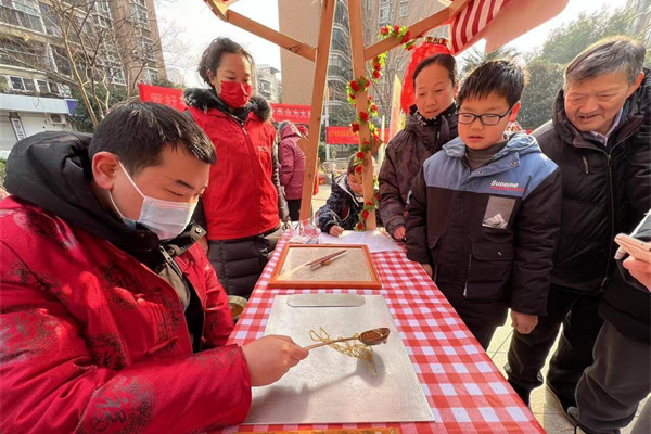 “我轉(zhuǎn)到了一條龍!”居住在新鑫佳苑小區(qū)的小朋友舉著糖畫,大聲告訴社區(qū)工作者,難掩興奮與快樂。“今天的活動特別好!既有便民服務(wù),又有傳統(tǒng)民俗手藝,我還領(lǐng)了一副對聯(lián),祝福大家新春快樂!”新鑫佳苑的老居民謝師傅說。