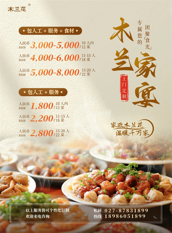 為確保水果湖旗艦店順利開展試運營,給木蘭花的忠實鐵粉們更多選擇,木蘭花公司經過精心策劃反復打磨,推出了品類豐富的個性化產品套餐:有備受企業、工會等組織喜愛的團購禮品卡,還有甜蜜雙人宴、主題生日宴、家宴、商務宴等 16種個性化私宴套餐方案,為客戶提供多元化的尊享體驗。