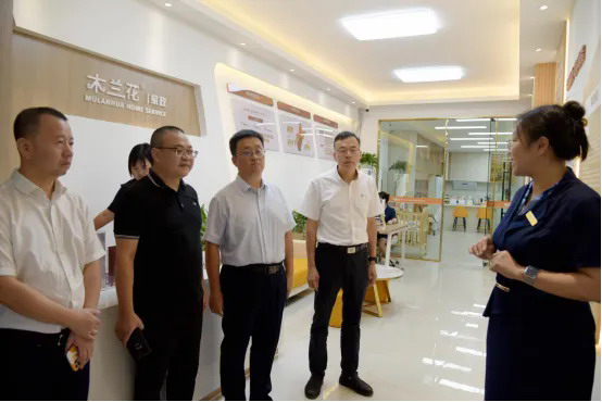 座談會前,考察團一行先后參觀了木蘭花家政高端定制水果湖旗艦店、水果湖街道東亭社區(qū)木蘭花頤養(yǎng)中心等線下實體門店。