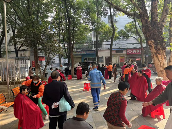 本次活動內容設置了:理發、磨刀耳科篩查,助力器使用、口腔義診、中醫義診、眼科,血糖、血壓、助聽器模擬推廣等項目,吸引了百余名居民群眾現場參與。活動現場,理發師們一邊按照老人的要求精心修剪頭發,一邊親切地和老人家長里短地嘮家常。在理發師們耐心、細致地服務下,老人們露出了滿意的笑容。