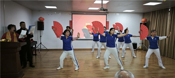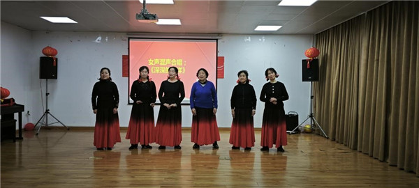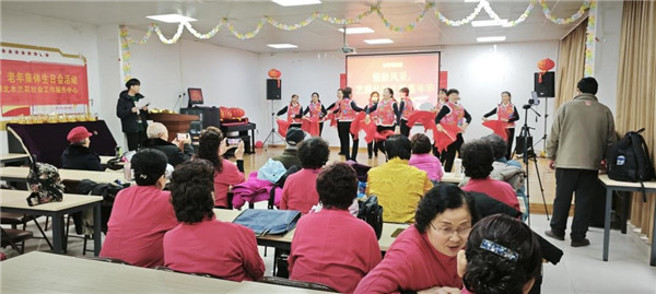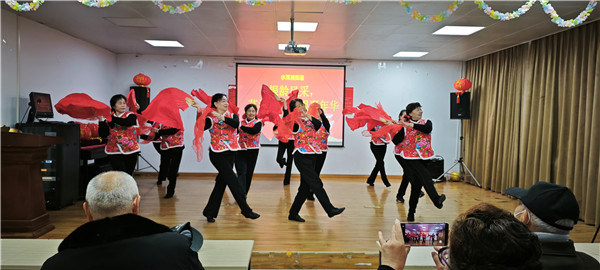 “山丹丹的那個開花呦,紅艷艷~~”隨著動聽的音樂響起,略施粉黛,統一著裝的阿姨們陸續登場,隨著音樂揮舞著手里的折扇,在空中畫出優美的弧線,臺下又響起陣陣掌聲。隨后,文娛團隊又表演了女生獨唱《你是血脈我是血》、女聲混聲合唱《深深的海洋》、男生獨唱《娥嫚》、舞蹈《千古一醉》、表演唱《龍船調》、歌舞《精忠報國》等。臺上的文娛骨干熱情洋溢的舞蹈和歌聲使這個冬季顯得溫暖又溫情。臺下壽星欣賞著大家的表演,并給予掌聲的肯定。
