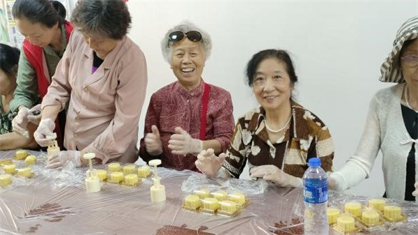 活動現場,專業糕點師悉心指導,老人們紛紛化身 “糕點達人”,從調配原料、按壓成型到脫模,每一步都專注投入。在歡聲笑語中,一個個造型精美、香氣四溢的綠豆糕新鮮出爐,老人們欣賞著自己的勞動成果,臉上洋溢著幸福的笑容。有的更是舉起手機拍照,給遠方的子女傳遞著喜悅。