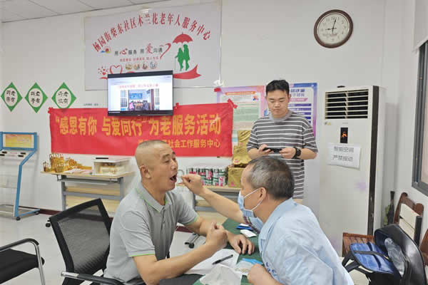義診活動中,口腔醫生為老人們進行口腔檢查,針對老人的口腔問題提出個性化的治療和護理建議。社區還對二季度中表現突出的銀齡志愿者進行表彰?!般y齡志愿者們積極參與社區志愿服務活動,為老年人提供幫助,展現了‘老有所為、老有所樂’的精神風貌?!辈駯|社區負責人說。