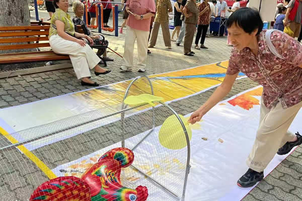 “商圈飛行棋”項目上,社區“15分鐘生活圈”地圖作為棋盤,通過搖骰子在棋盤上行走,當搖到地圖上的商戶,完成相應任務動作,在限定時間內走完,即可闖關成功。這個游戲讓居民們更加深入地了解生活圈里的商戶。“稻穗拼圖”項目中,居民們和商戶協作拼圖,用一顆顆金黃的稻穗拼出商鋪的名字,共同凝聚社區力量。參與活動的王阿姨開心地說:“感謝社區讓我們能有機會和商戶們共同參與這么創意有趣的活動。”
