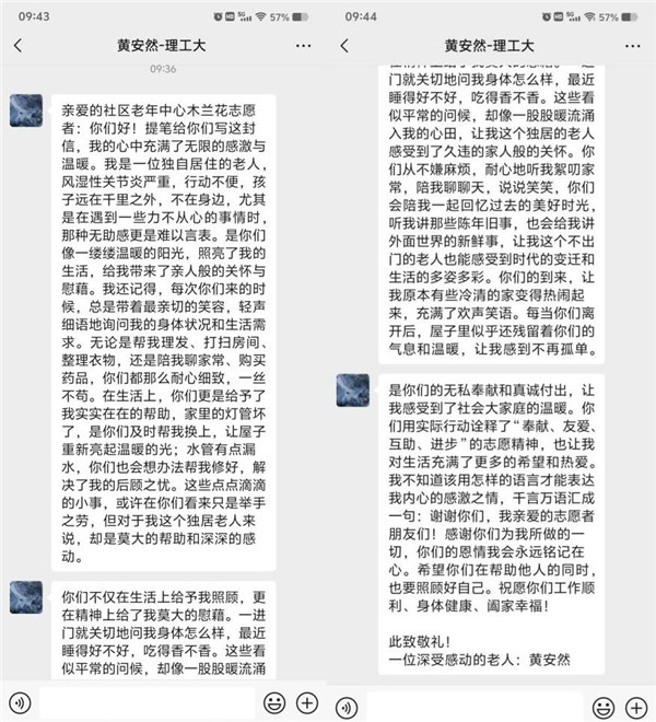 與鄭老師不同,79歲的黃阿姨因嚴重風濕常年被困家中,連下樓曬曬太陽都成奢望。服務中心將她列為“一對一”重點幫扶對象,除了每周定期上門了解飲食起居、陪她聊天解悶,工作人員還特意記下她的用藥清單,每次采購都仔細核對廠家和有效期;得知她頭發(fā)長了不方便出門,便聯(lián)系志愿者上門理發(fā);就連衛(wèi)生間漏水、燈泡損壞這類小事,一個電話工作人員就會趕來處理。“你們比我的親人還周到,真是把溫暖送到了我心坎里?!秉S阿姨在信中這句“不是親人勝似親人”的評價,成了對服務最好的褒獎。
