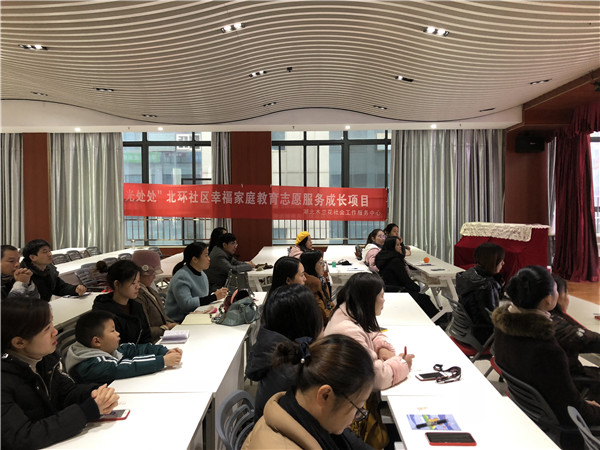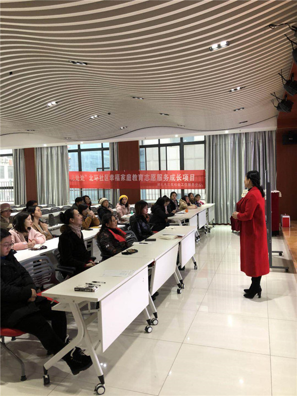 12 月 15 日,由湖北省婦聯旗下公益品牌木蘭花社會工作服務中心承辦的北環路社區家庭教育講堂又開課了。中級講師、家庭輔導師王小曼主講,主題為“家庭公約與幸福家庭——如何做一名合格的家長”。